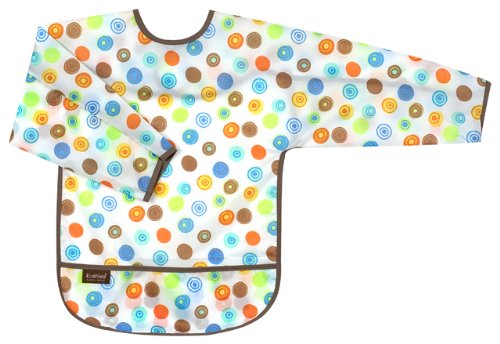 Protect your little one's clothes from from big messes at mealtime with Kushies lightweight taffeta waterproof bib with sleeves. Featuring a catch-all pocket to intercept stray pieces of food before hitting the floor and long sleeves for complete coverage, they can also be used as an art smock. The lightweight fabric is easy to care for and instantly re-usable - simply rinse and wipe clean! Lead, phthalate, PVC, & BPA free!