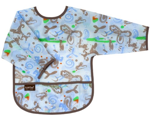 Protect your little one's clothes from from big messes at mealtime with Kushies lightweight taffeta waterproof bib with sleeves. Featuring a catch-all pocket to intercept stray pieces of food before hitting the floor and long sleeves for complete coverage, they can also be used as an art smock. The lightweight fabric is easy to care for and instantly re-usable - simply rinse and wipe clean! Lead, phthalate, PVC, & BPA free!