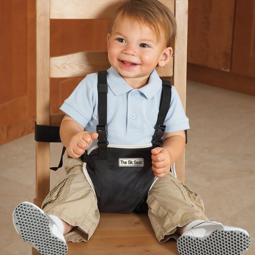 Four travel seats for the price of one...you'll get so much use out of our one-of-a-kind baby seat! It not only attaches to nearly any chair, anywhere, it attaches to YOU, securing baby on your lap hands-free. The perfect flight vest for airplanes, because baby is safely anchored to you. Works in shopping carts, too. Soft and comfortable, with a non-slip bottom. Super portable; rolls into its own self-pouch (fits easily in diaper bags). For ages 5 months and up, up to 37 lbs. Machine wash. Imported. Winner of the iParenting Media Award Works on chairs, laps, airplanes, and shopping carts Unlike others, it has a non-slip bottom that grips the surface of any chair Features a four-point restraint and buckle fasteners (a better choice for travel chairs than Velcro(R)) Adjustable shoulder, side, and chair straps fit a variety of situations and adapt for growing kids Like other baby flight vests, it's intended for the cruise portion of flights and is not specifically approved for take-offs, landings, and taxiing Wipe clean nylon/poly, with poly shoulder straps Machine wash gentle, air dry Measures 11"L x 10 1/4"W x 1/2"H laid flat and 7"L x 7"W x 2 1/2"H folded into its pouch Shoulder straps adjust up to 16 1/2"L, tummy side straps adjust up to 7", and chair strap adjusts up to 49"L