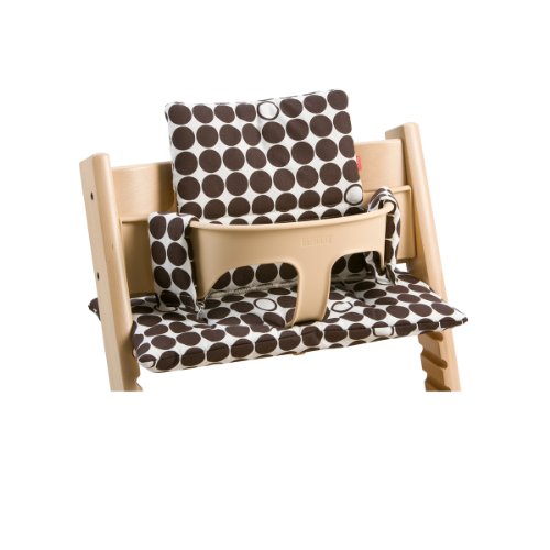 146008 Color/Pattern: Dots Brown Features: -For use with the Tripp Trapp High Chair.-Velcro attachment.-Machine washable.-Attaches easily. Options: -Fabric available in Beige Stripe, Art Stripe, Dots Black, and Dots Brown. Dimensions: -Dimensions: 3'' H x 10'' W x 12'' D. Disclaimer: -Please Note: Cushions will only fit Classic or Trend Tripp Trapp and not fit on the Original.